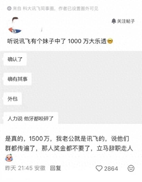 針對這一傳聞,科大訊飛很快在官方平臺上作出回應。公司表示,已經(jīng)注意到了網(wǎng)上關于員工中獎的相關信息,并表示如果真有同事如此幸運,公司會由衷地為他感到高興。