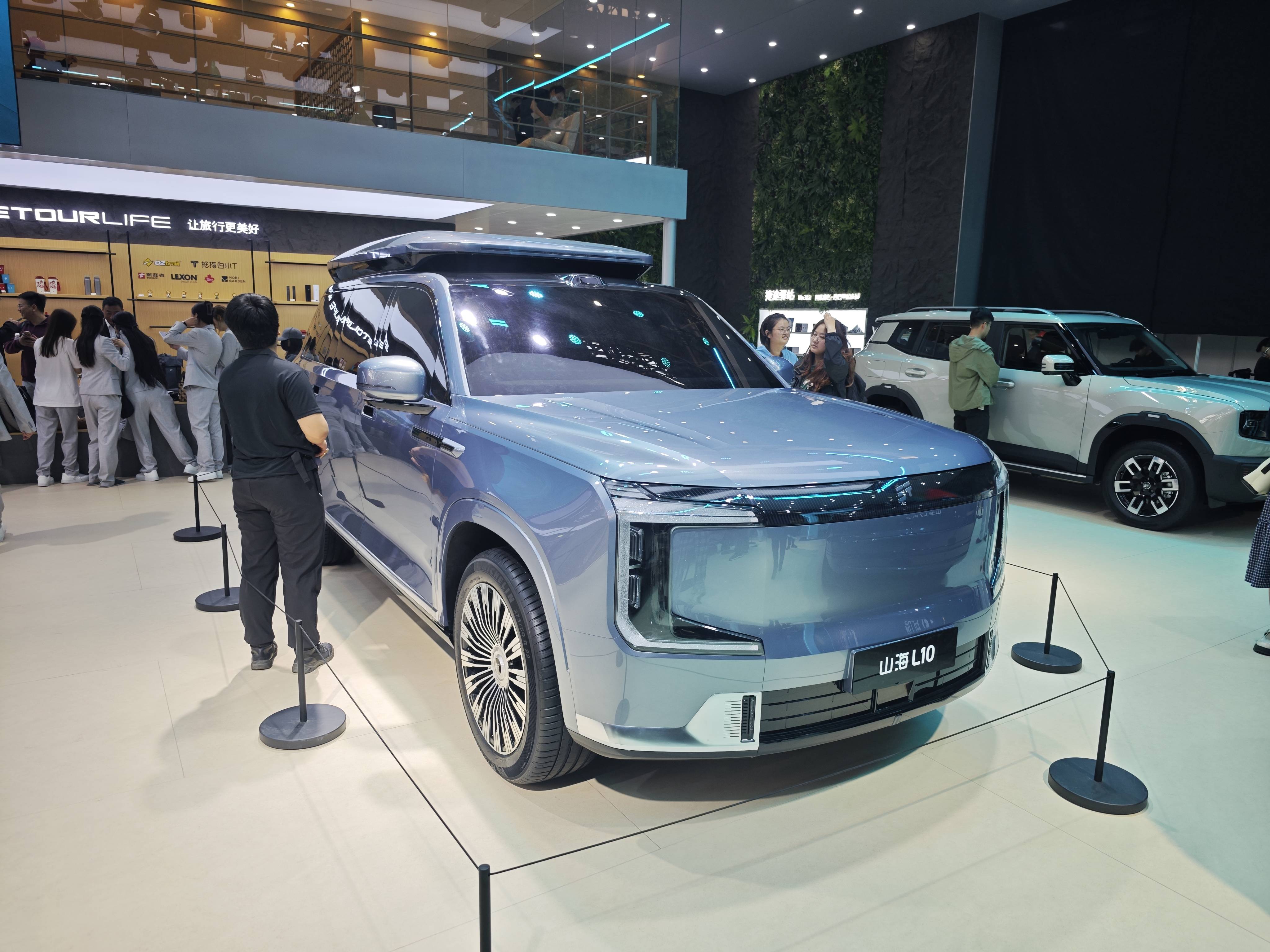 同期展出的山海L10則以全新設計語言詮釋旅行理念,外觀造型威嚴霸氣,車內空間主打旅行場景化體驗。展臺特別布置可升降雙層帳篷與后備廂模塊化廚房,將車輛功能延伸至戶外生活領域,這種創新設計為消費者提供了更具想象力的出行解決方案。兩款車型的同臺亮相,展現了捷途品牌在旅行越野市場的深度布局。