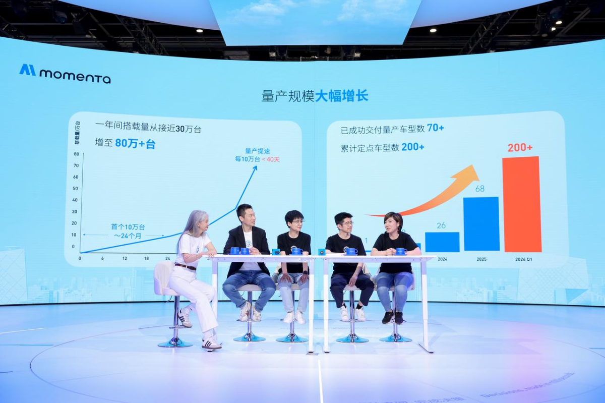 Momenta合伙人、市場商務SVP孫環介紹,搭載Momenta系統的量產車輛規模已超過80萬臺。量產速度實現質的跨越:2022年首個10萬臺量產耗時24個月,而今最快不到40天即可完成10萬臺交付,飛輪效應正在加速形成。